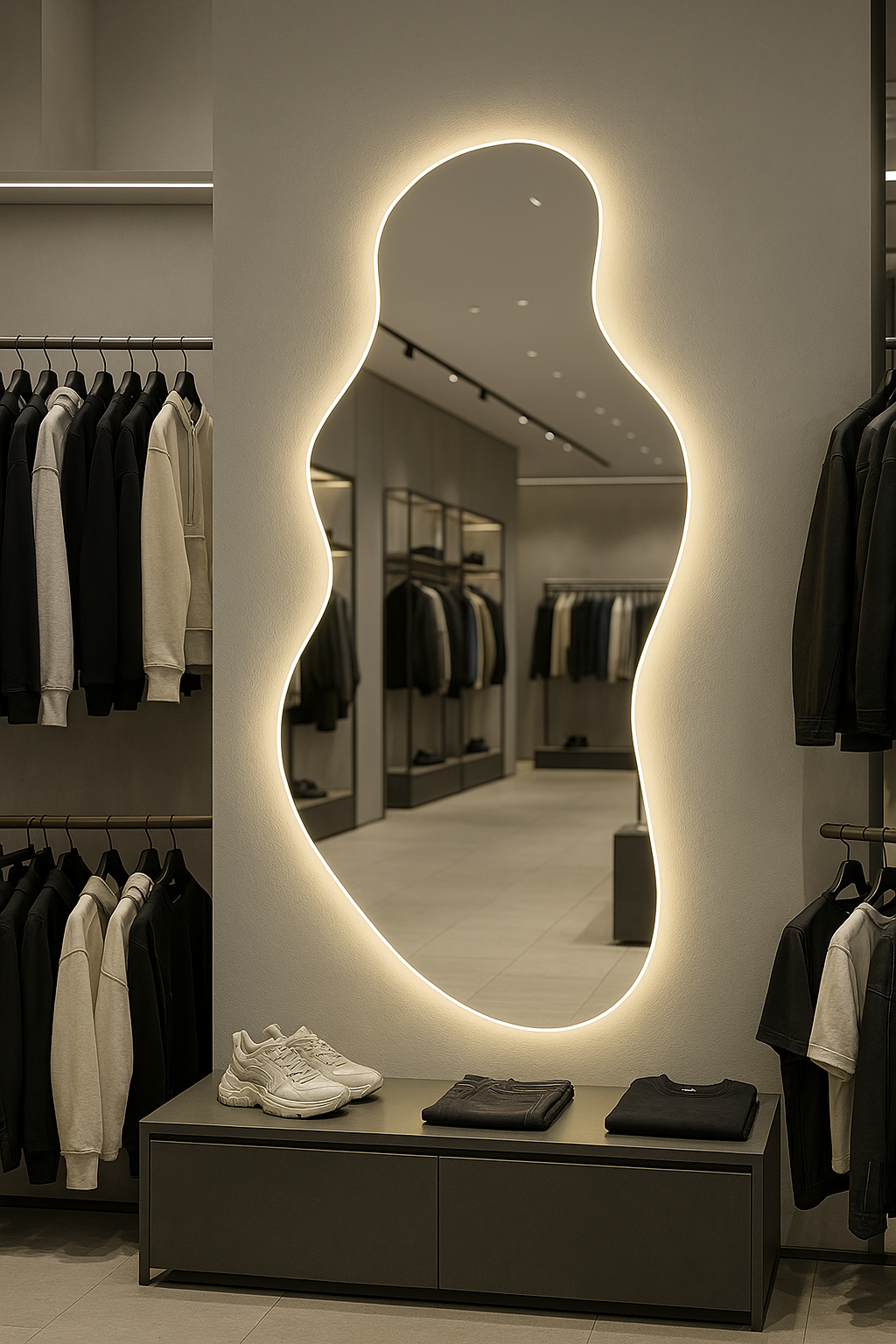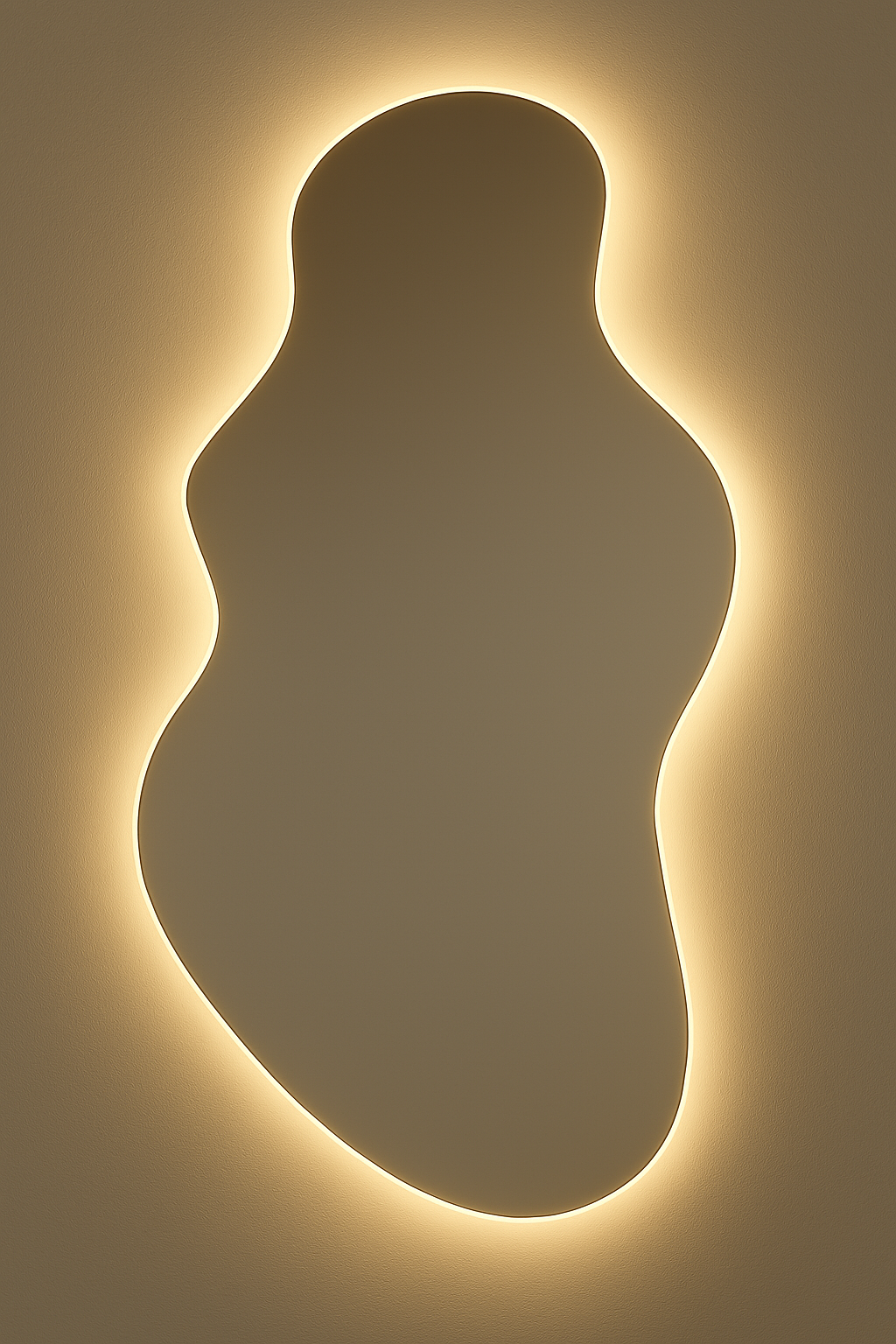 Integrated LED lighting creates a soft, halo-like glow against the wall